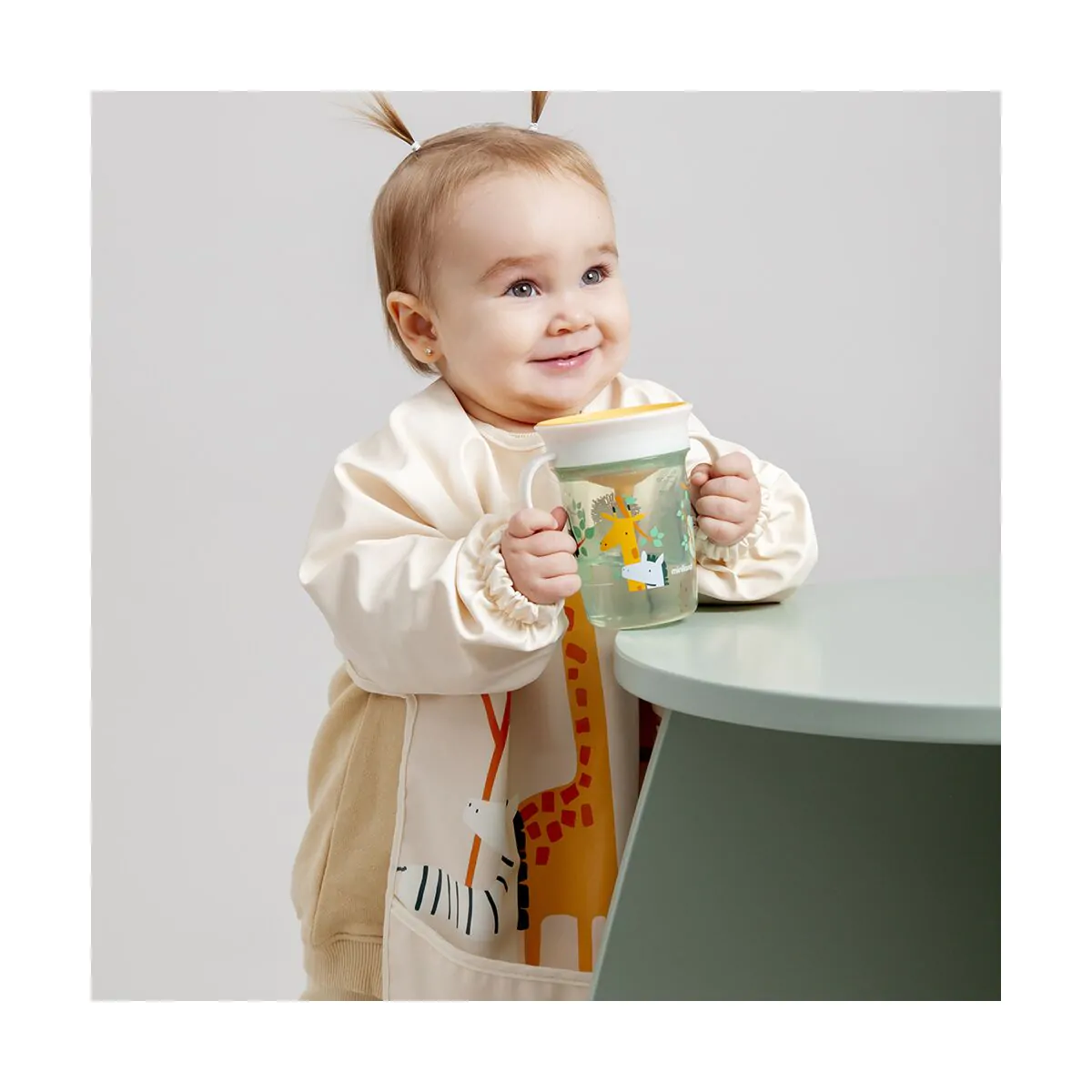 Miniland långärmade haklappar är tillverkade för att skydda barn under måltider eller kreativa aktiviteter och ger en praktiskt, motståndskraftigt och bekvämt skydd. Tillverkade av PU, ett lätt, vattentätt och hållbart material, så ger dessa haklappar ett utmärkt skydd mot fläckar och stänk.
